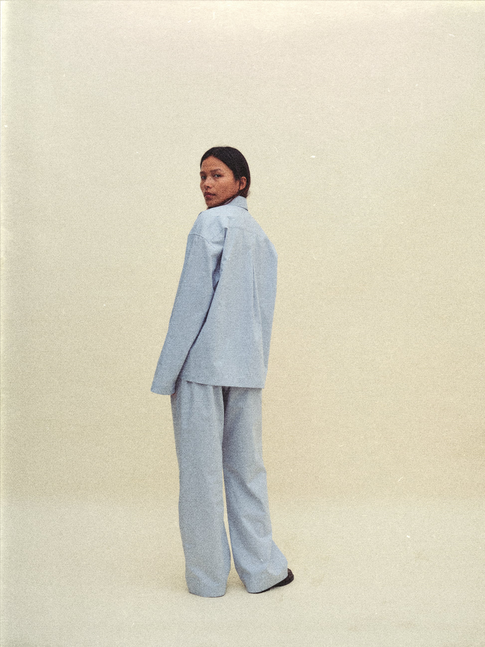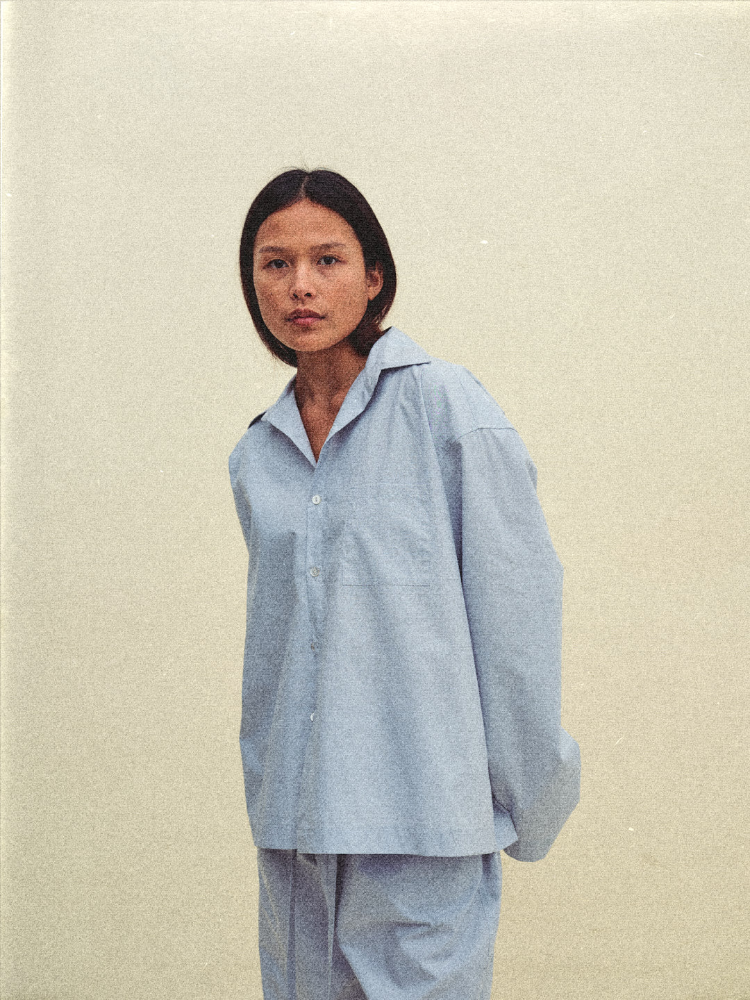 Crafted with typewriter poplin fabric. The lounge shirt has a strong structure and a smooth surface, while being lightweight and breathable.